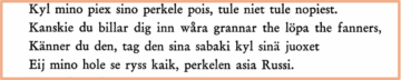 Under medeltiden var det samtidigt inte ovanligt att flera språk användes till och med inom en och samma text. Marko visade bland annat ett exempel från en text av Stiernhielm, där en soldat kodväxlar flitigt till finska och även andra språk. Under 1600-talet var detta ganska typiskt i poesin. Fenomenet, som har kallats bl.a. makaronisk diktning, härstammar sannolikt ursprungligen från Italien.