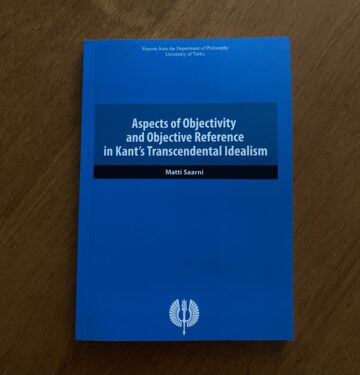 Kuvassa väitöskirja: Matti Saarni (2020). Aspects of objectivity and objective reference in Kant’s transcendental idealism.