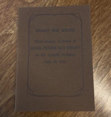 Timo Airaksinen, Risto Hilpinen, Juhani Pietarinen, Arto Siitonen, ym. (1976). Wright and Wrong: Mini-essays in honor of Georg Henrik Von Wright on his sixtieth birthday, June 14, 1976. [3]