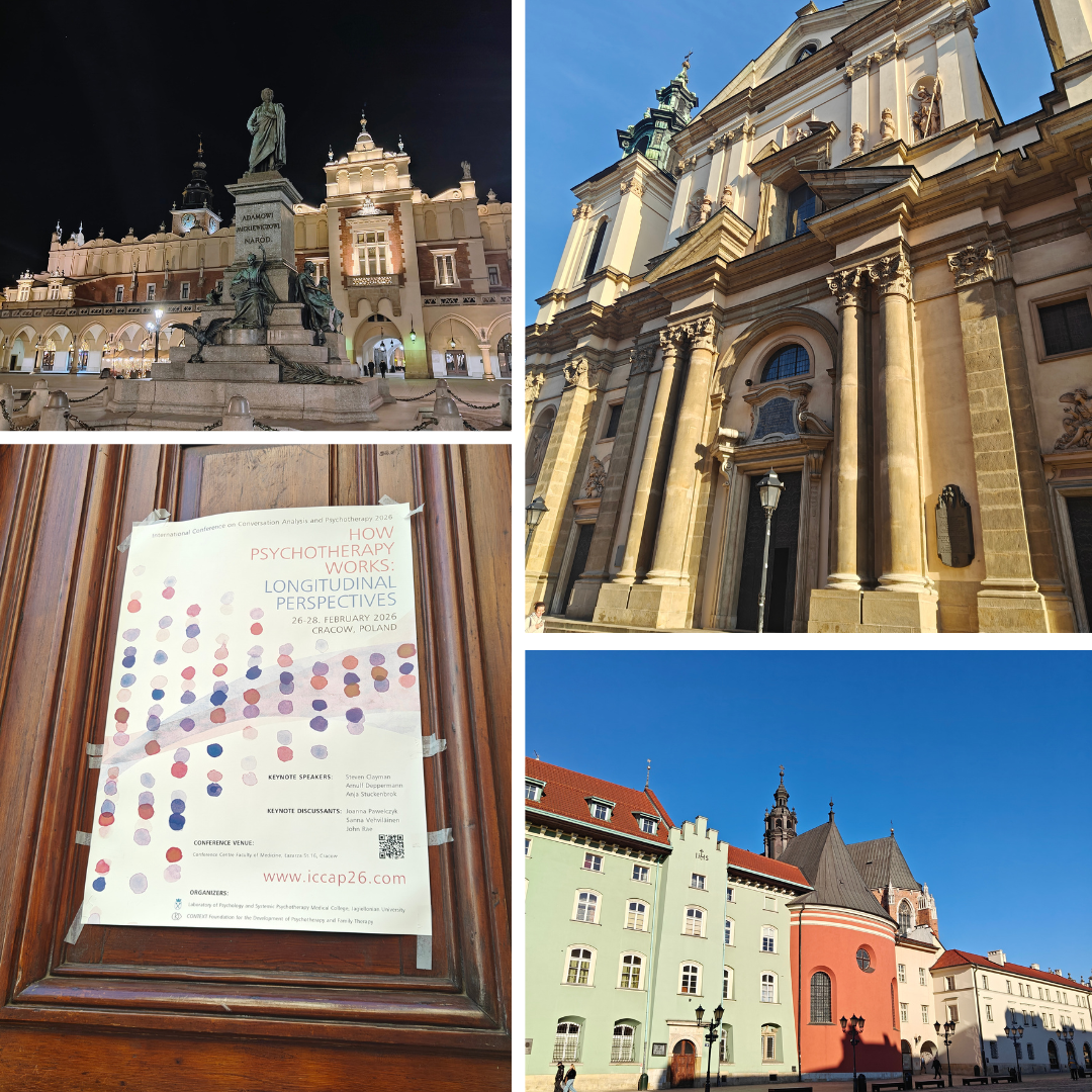 Meillä on Borderlines of Self -hankkeessa aineistona kokonainen vuoden kestänyt ryhmäterapiaprosessi, jota on tarkoitus analysoida laadullisesti myös muutosten näkökulmasta, joten ICCAP-konferenssin vuoden 2026 teema “Kuinka psykoterapia toimii: pitkittäisiä näkökulmia” houkutteli meidät lähtemään mukaan. Vaikka salaa ehkä toivoimme, että saisimme konferenssista selvät sävelet tulevaa työtämme varten, kävi pikemminkin niin, että käsityksemme tehtävän vaikeudesta vahvistui. Terapeuttisia muutoksia on jossain määrin mahdollista tavoittaa vuorovaikutusaineistosta, mutta sitä, millaisista ilmiöistä ja yksityiskohdista niitä kannattaisi ensisijaisesti etsiä, ei vielä tiedetä.