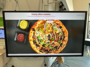 3.Two-Way Communication Experiment: The final experiment implemented an interactive food waste pledge system where diners had to slice relatable food items using a digital knife. This system allowed diners to not only interact but also receive feedback and see the collective impact of their actions, fostering a more reciprocal interaction. This two-way communication proved most effective, achieving an engagement rate of approximately 7.49%. Furthermore, the completion rate for the pledge in this experiment was around 55%, indicating a strong commitment once users initiated the interaction.