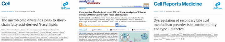 2. Isokääntä, H.; Pinto da Silva, L.; Karu, N.; Kallonen, T.; Aatsinki, A. K.; Hankemeier, T.; Schimmel, L.; Diaz, E.; Hyötyläinen, T.; Dorrestein, P. C.; Knight, R.; Orešič, M.; Kaddurah-Daouk, R.; Dickens, A. M.; Lamichhane, S., Comparative Metabolomics and Microbiome Analysis of Ethanol versus OMNImet/gene•GUT Fecal Stabilization. Analytical Chemistry 2024, 96 (22), 8893-8904
