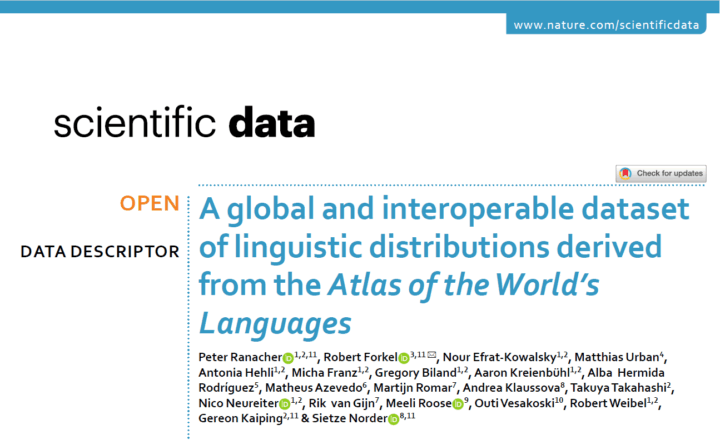 Ranacher P, Forkel R, Efrat‑Kowalsky N, Urban M, Hehli A, Franz M, Biland G, Kreienbühl A, Hermida Rodríguez A, Azevedo M et al. A global and interoperable dataset of linguistic distributions derived from the Atlas of the World’s Languages. Scientific Data 12 (1). https://doi.org/10.1038/s41597‑025‑05828‑6