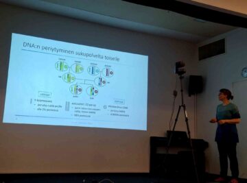 Here Elina Salmela is sharing to the audience the secrets of DNA inheritance. Picture by Ulla Nordfors