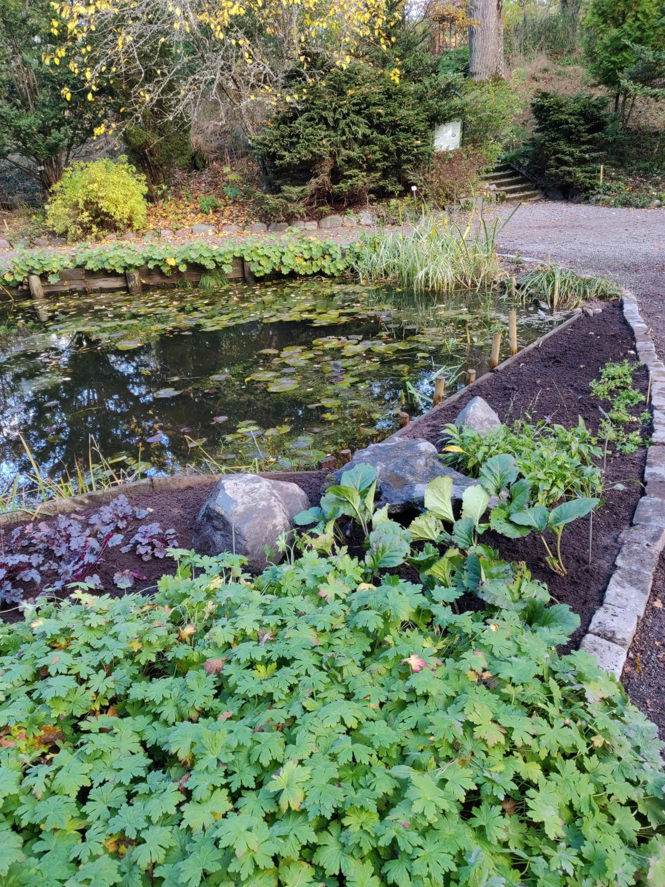 Itämaisen lammen lahonnut puureunus rakennettiin myös uudelleen ja lammen eteläpäädyn istutukset uusittiin. Lammen viereiselle pohjoisrinteelle on tehty aivan uusi istutusalue talvenkestäville bambuille. Bamburinne tulee sisältämään toistakymmentä erilaista bambua Kiinan ja Japanin vuoristoista. Taimet on saatu lahjoituksena Helsingin kasvitieteellisestä puutarhasta sekä muutamilta kokeneilta bambuharrastajilta. Odotamme innolla kevättä, jotta pääsemme viimeistelemään tämän alueen ja esittelemään sen vierailijoille.