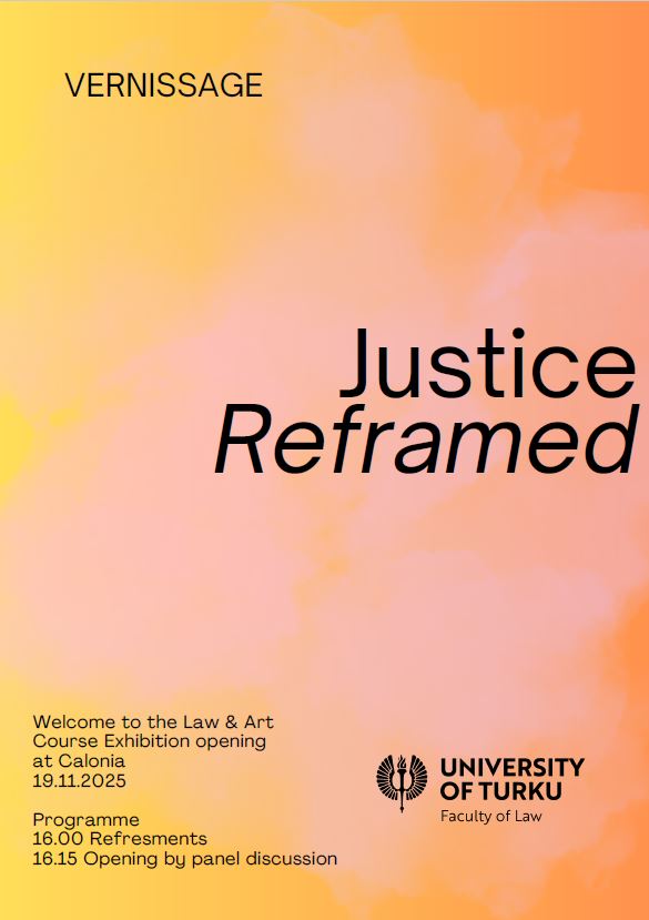 The Law & Art course vernissage Justice reframed will take place on the 19th of November 2025 at 16.00. The name of the exhibition was co-created with the students and their artistic work will be displayed in Calonia main hall.