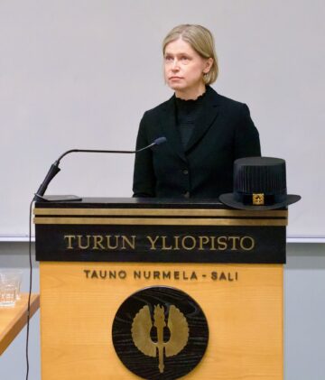 Professori Minna Stolt piti Turun yliopiston akateemiseen perinteeseen kuuluvan professoriluennon 2.12.2025 aiheesta ”Toiminnallinen terveys – tärkeää hoitamisessa ja tutkimuksessa”.