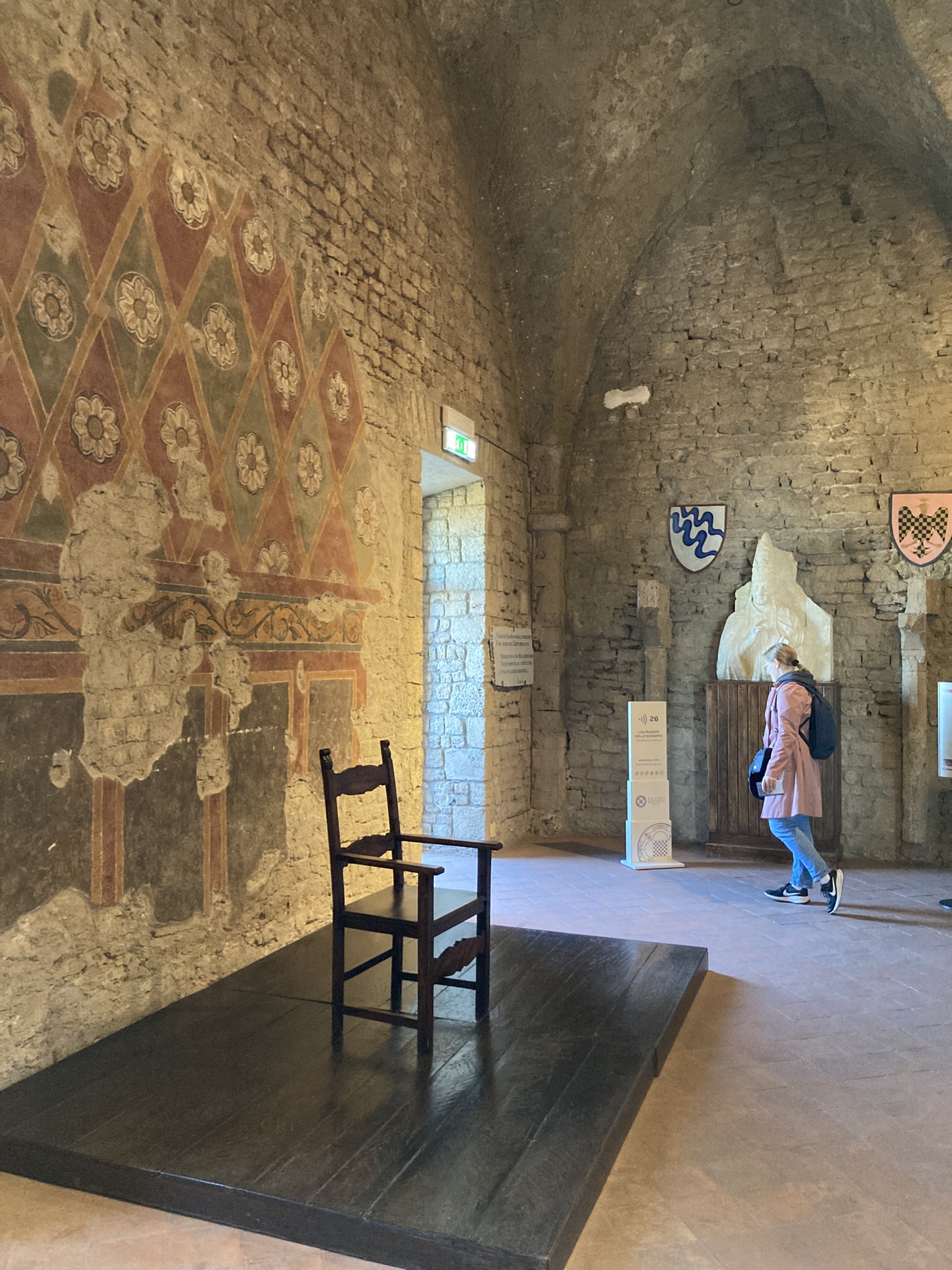 Meitä kiinnosti Anagnissa erityisesti tuomiokirkon krypta, jonka 1100–1200-lukujen freskot kuuluvat Euroopan parhaiten säilyneisiin. Ne eivät ole vain visuaalisesti vaikuttavia, vaan kertovat myös siitä, miten tieteelliset, lääketieteelliset ja luonnonfilosofiset tekstit siivilöityivät sydänkeskiajan kirkolliseen kulttuuriin – samaan ajattelumaailmaan, jonka puitteissa Etelä-Italian metsänraivauksen ideologinen oikeutus ja hengellinen viitekehys muotoutuivat. Kryptasta löytyy myös yksi varhaisimmista Thomas Becketin kuvauksista, joka tuo tärkeän lisän projektimme tutkimukseen pyhimyskalentereista ja kulttien leviämisestä Etelä-Italiassa.