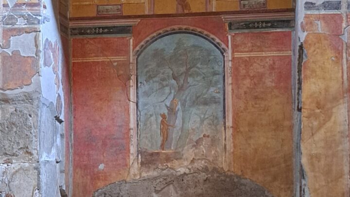 Kuva: Puuta halaava Hercules Poppaean villan caldariumissa Oplontiksessa. Kuvaaja Jutta Laitila.