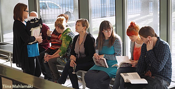 Sirkkalan Janus-salin aulaan oli 12.3. kokoontunut suuri joukko turkulaisia kulttuurintutkijoita juhlimaan uuden yhteisen oppikirjan, Askel kulttuurien tutkimukseen (Turun yliopisto 2015), ilmestymistä. Tilaisuudessa puhui hkt-laitoksen johtaja, folkloristiikan professori Pekka Hakamies, kirjan toimittaja, uskontotieteen tohtorikoulutettava Jaana Kouri, kansatieteen yliopistonlehtori Hanneleena Hieta sekä Kourin kukittanut uskontotieteen professori Veikko Anttonen. Kaikki puhujat olivat olleet mukana kirjaprojektissa. Puheiden jälkeen kuultiin kahdesta folkloristista ja yhdestä uskontotieteilijästä koostuvan, oppiaineryhmän ja vanhan laitoksen aikaisemman fyysisen sijaintipaikan mukaan nimetyn Fennicum Fellows String Societyn musisointia.