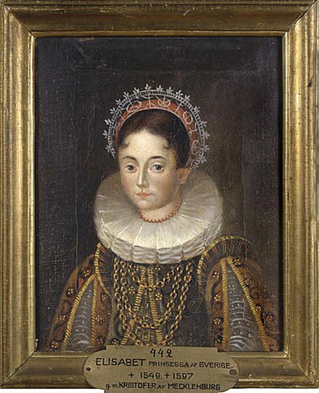 Kustaa Vaasan tytär Elisabet Mecklenburg (1549–1597) noin 1580. Taiteilija tuntematon. Kuva: Ruotsin kansallismuseon kokoelmat.