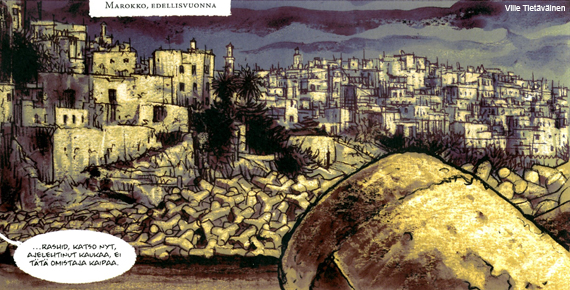 Toukokuussa valmistuneessa pro gradu -tutkielmassani tarkastelen ylirajaisuutta Ville Tietäväisen vuonna 2011 julkaistussa Näkymättömät kädet -sarjakuvaromaanissa. Ylirajaisuus eli transnationalismi on laaja, etenkin yhteiskuntatieteissä käytetty teoreettinen kehys, joka toimii analyyttisena työkaluna siirtolaisuuteen liittyvien ilmiöiden tutkimisessa. Yksinkertaisesti sanottuna transnationalismi viittaa valtioiden rajoja ylittäviin virtauksiin; ihmisten, paikkojen ja instituutioiden välisiin taloudellisiin, sosiaalisiin, kulttuurisiin ja poliittisiin yhteyksiin. Tutkielmani näkökulma kumpuaakin kohdeteoksen tematiikasta, joka liikkuu globaalin eriarvoisuuden, luvattoman siirtolaisuuden, etnisyyden ja rasismin kysymysten, koti-ikävän, uskonnon, kunnian ja hulluuden sekä rajojen ja niiden ylittämisen ympärillä. Tutkielmassani käsittelen ylirajaisuuden ilmenemistä sekä sarjakuvan ilmaisun ja tarinamaailman tasolla että teoksen siirtolaishahmojen ja lukijan välisenä kohtaamisena.