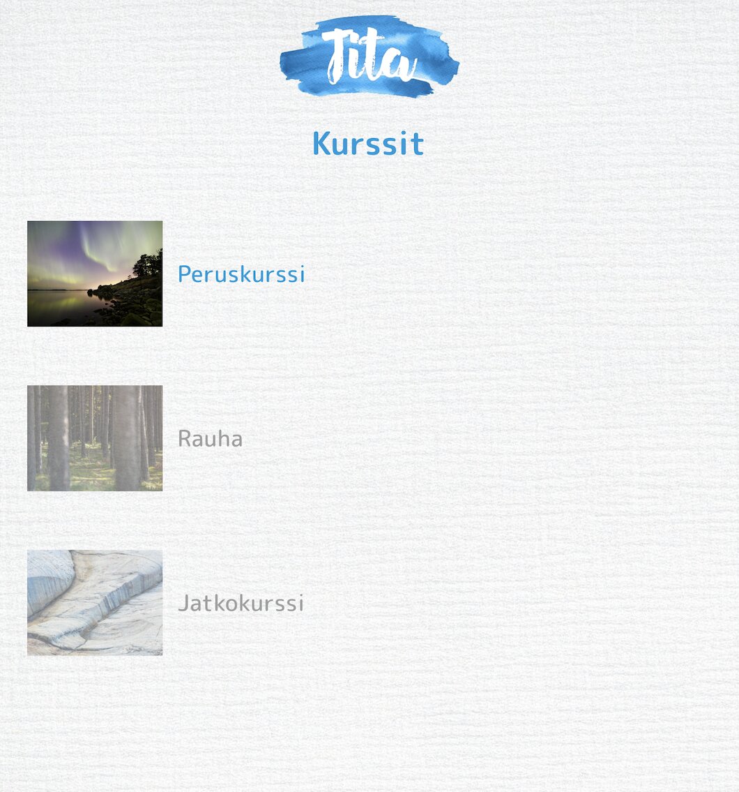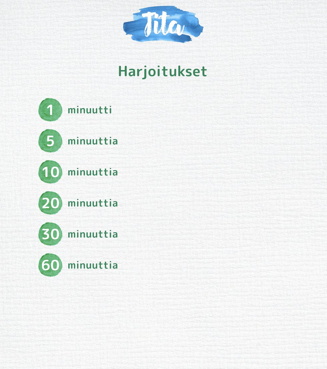 Tita is a mindfulness app developed at the University of Turku. A recent randomized controlled trial found that using Tita reduced symptoms of anxiety and depression. The application tailors a 30-day mindfulness course for the user based on a set of initial questions. Tita can distinguish between stress, depression, and anxiety, and is able to guide the user depending on which issues are currently most relevant in their life. Tita was developed by psychologist Oskari Lahtinen, PhD.